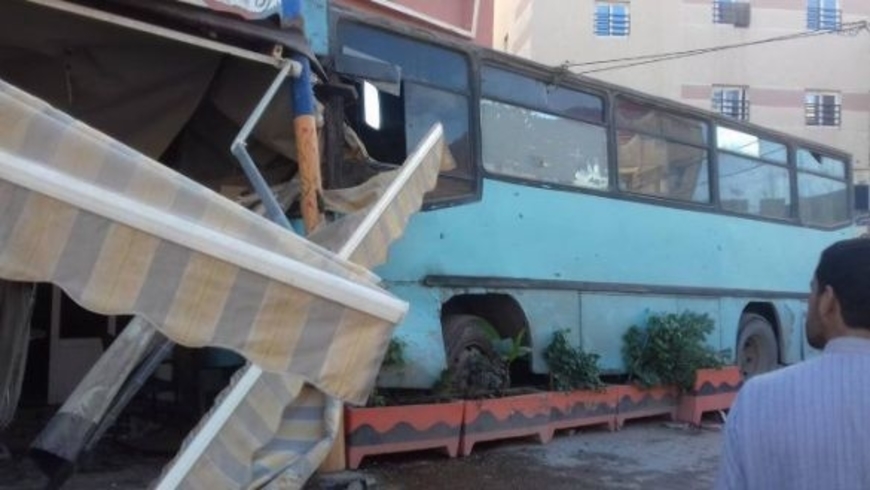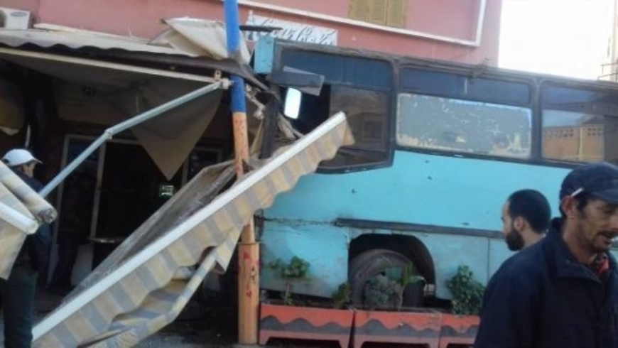 شاهدوا بالصور الحافلة المتهورة التي اقتحم سائقها مقهى بمدينة إنزكان