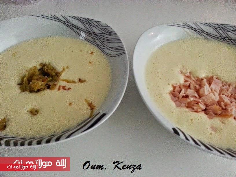 نخلطو الحليب مع مايزينا ، الملح و الابزار…نخليوهم فوق نار مهيلة مع التحريك حتى يتقال الخليط .