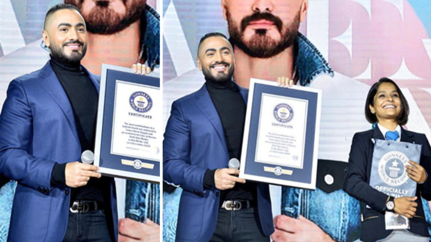 فاز النجم المصري تامر حسني بجائزة “جينيس وورلد ريكوردز” العالمية، كأكثر فنان مؤثر في العالم.