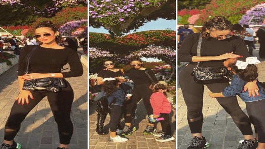 بسمة بوسيل نشرت صورها مع ابنتيها تاليا وأماليا على حسابها على انستقرام، ولكنها حرصت على إخفاء وجهيهما من خلال جعلهما ينظران إليها لحظة التقاط الصور.