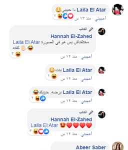 ليلى العطار والدة أحمد فهمي دخلت على الخط، وكتبت مناكفة كنّتها “ده حبيبي”، لترد عليها هنا الزاهد قائلة: مختلفناش بس هو في الصورة كفتة، لتعود الحماة وتكتب موبّخة “بنت” ثم أضافت في تعليق آخر: برضه حبيبك، لتعلق هنا الزاهد بأيقونات لقلوب حمراء.