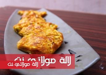 ناخدو كويرة من العجين ونورقوها مزيان بالزيت ونعمروها بشوية الحشوة ونطويوها بالطريقة العادية تاع الرغايف