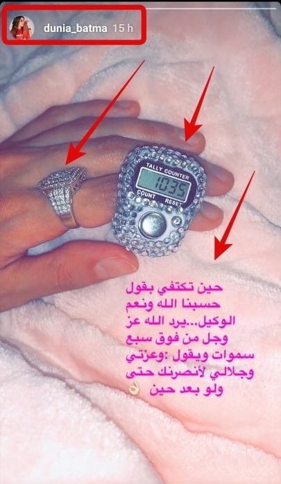 المثير في هذه الصورة، أن هذه “السبحة” الإلكترونية التي وضعتها “بطمة” على سبابتها، قال البعض أن سعرها غال جدا، لأنها مرصعة بأحجار كريمة، وهو ما جر عليها كثيرا من القيل والقال.