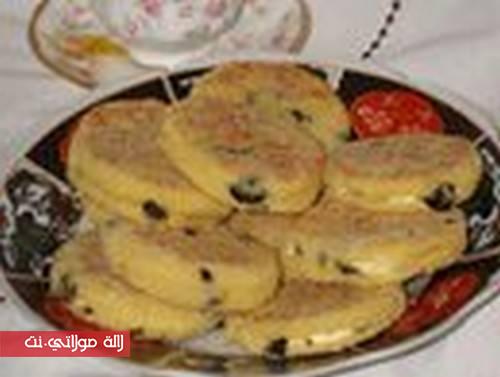 ثم ناخد قطعة من العجين ثانية و نبسط جيدا حتى تتجانس شوى ثم نطوى الجوانب قليلا ادا ظهرت الحشوة و بس — ونقطعها دوائر صغيرة و نقوم بطهيها في المقلاة