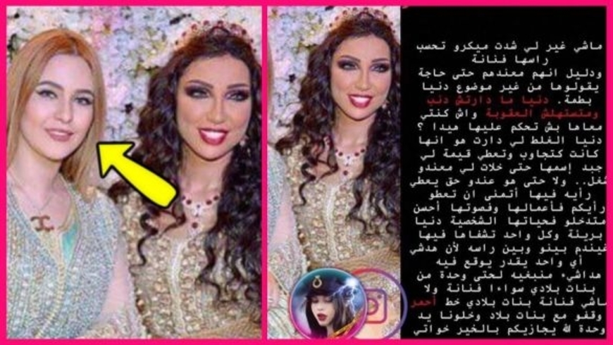 وحسب خولة فإن دنيا “بريئة وكل واحد تشفا فيها غيندم بينو وبين راسو، لأن هاذشي أي واحد يقدر يوقع ليه ما نبغيه لحتى وحدة من بنات بلادي، سواء فنانة ولا ماشي فنانة. بنات بلادي خط أحمر وقفو مع بنات البلاد وخلونا يد وحدة الله يجازيكم بالخير خواتي”.