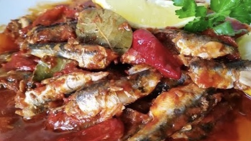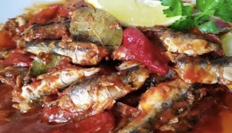 سمك السردين منقي ومنزوع السلسول و مغسول جيدا – 3وريقات من ورقة سيدنا موسى ( ورق الغار ) – 3 فصوص من الثوم – ملعقة كبيرة من معجون الطماطم – القليل من الهريسة – ملح – إبزار – نصف كأس زيت الزيتون – نصف كأس خل .