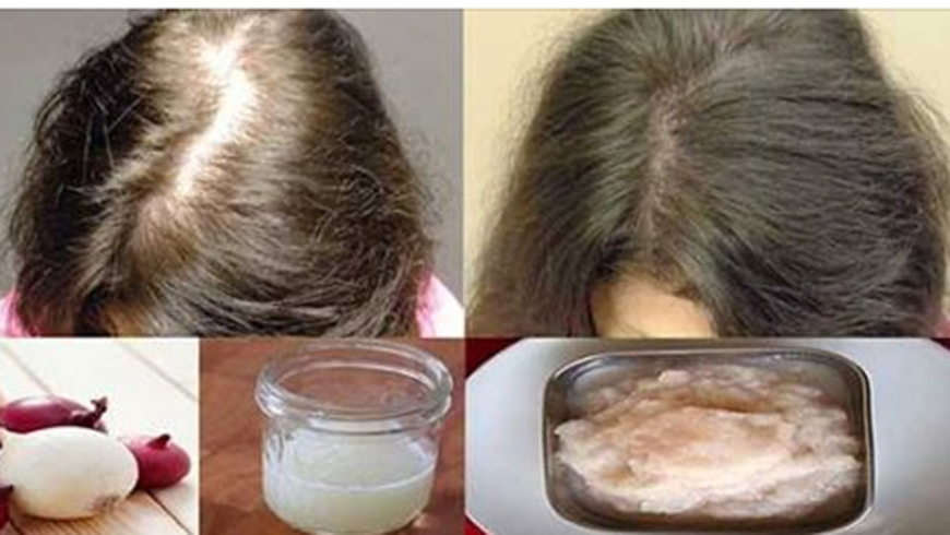١- امزجي 3ملاعق كبيرة من ماء البصل مع ملعقة كبيرة زيت زيتون.