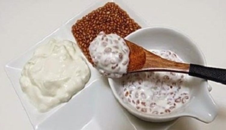 المكونات : 3ملاعق من بذور الكتان+ملعقة من العسل الطبيعي+علبة من الياغورت الطبيعي+ ملعقة من الصوجا مطحونة + ملعقة السمسم