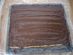 نذوب 300 غ من الشوكلاطة السوداء ونضعها في الصينية ونتركها حتى تجف