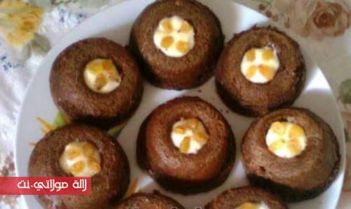 طربي البيض مع السكر و الفاني حتى يرغوي . زيدي عليهم الياغورت و الزيت وطربي من جديد . في الأخير , أضيفي الدقيق مخلط مع الخميرة و الكاكاو و خلطي الكل بملعقة خشبيةدهني المول الصغار بالزبدة و دردري عليهم الدقيق .عمريهم حتى الثلثين بالخليط و طيبيهم في فرن معتدل 180 درجة وخليهم جانبا