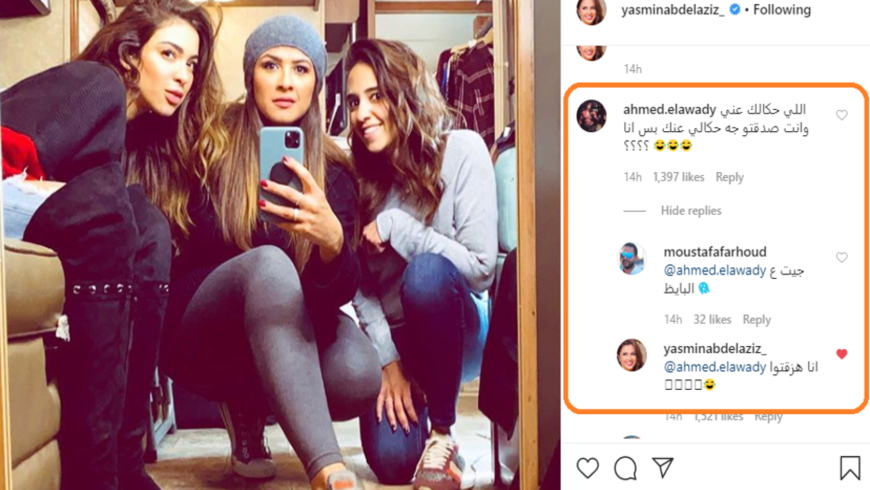 أحمد العوضي فاجأ ياسمين عبد العزيز بتعليق غريب على صورتها مع صديقتيها، وهو كتابته جزء من أغنية “بتكبرها عليا” للفنان رضا البحراوي فقال: “اللي حكالك عني وأنت صدقتو جه حكالي عنك بس أنا؟؟”.