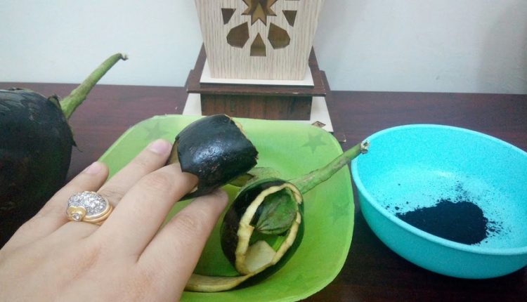 المكونات :كمية من قشور الباذنجان+ملعقة من الشاي الاسود
