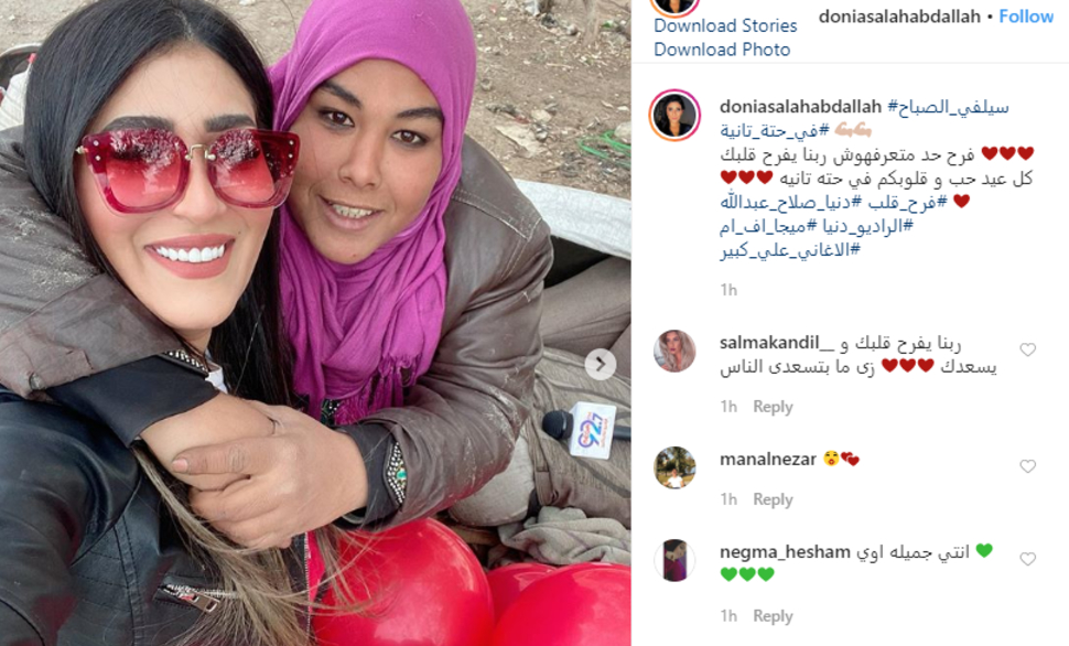 أما المذيعة ابنة صلاح عبدالله فنشرت مشاركتها الخيرية، من خلال صور مع مجموعة من الأطفال وعلقت: “فرح حد متعرفهوش ربنا يفرح قلبك كل عيد حب و قلوبكم في حته تانيه”.