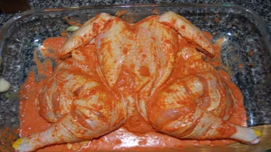 إن التوابل هي من تضيف للدجاج المشوي نكهة خاصة وطعم لذيذ مميز، مع إضافة الخضراوات والمنكهات وصولاَ إلى أطيب شكل وطعم، وهنا نقترح عليك سيدتي هذه التتبيلة الرائعة الخاصة والتي يتفنن فيها الطباخات المراكشيات والتي تتكون من مواد طبيعية وغاية في اللذة.