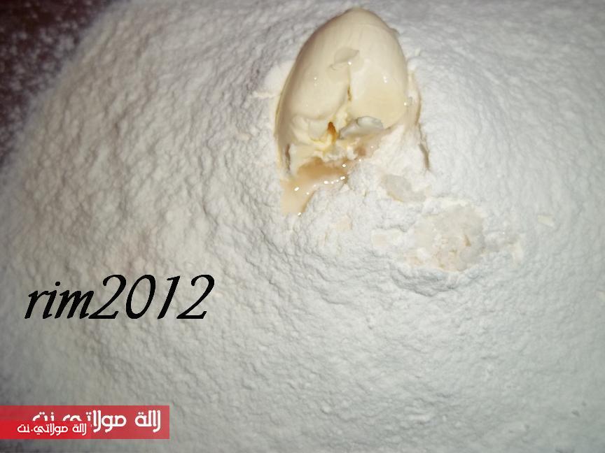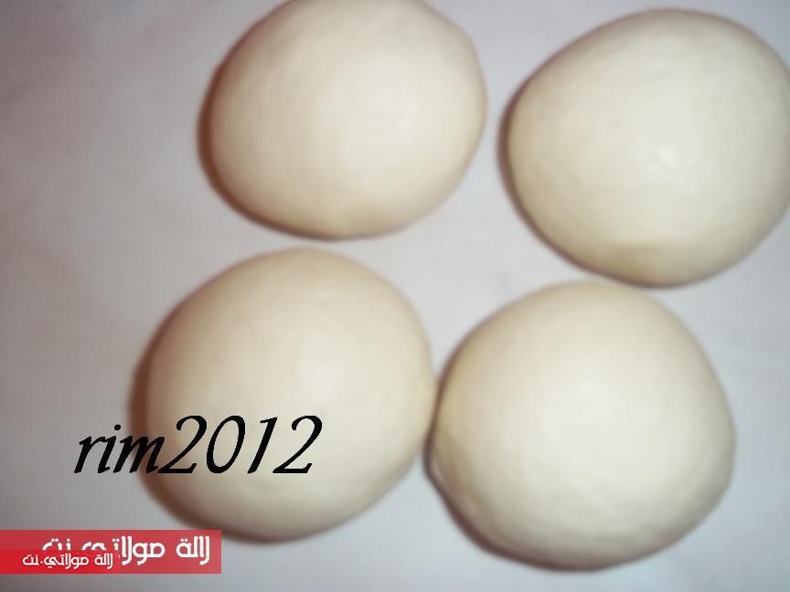 تجمع العجين تكون قاسحة قليلا وتدلك جيدا وتعمل منها 4 كورات متساويات وتترك ترتاح