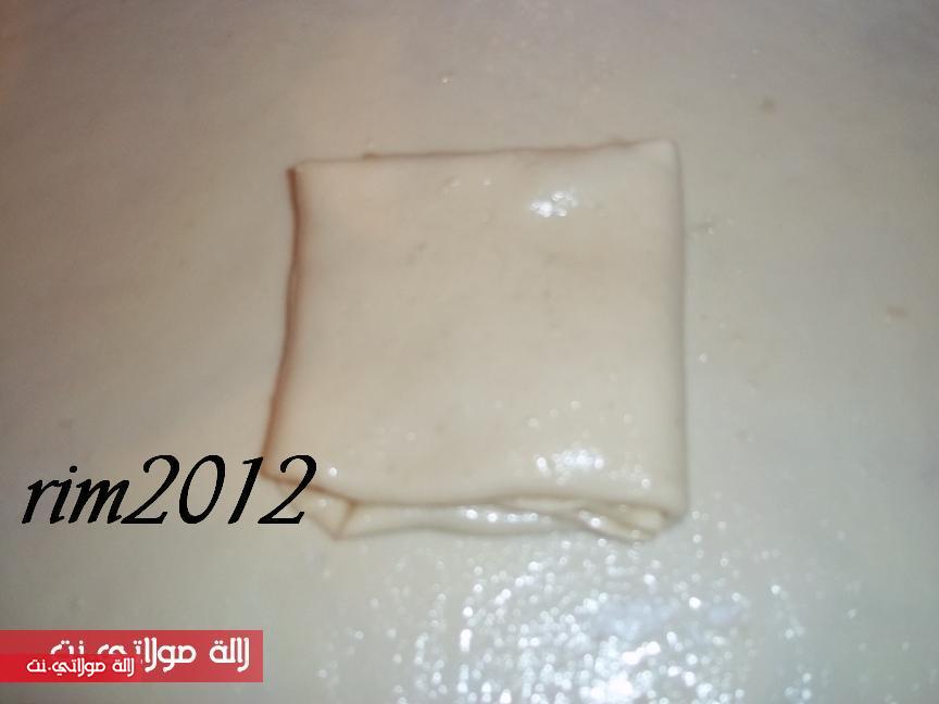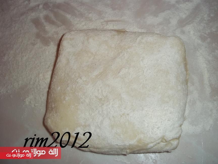 وتاخد كرة وتبسط رقيقة جدا مع الدهن بالزبدة والزيت وتطوى على4 وتعمل واحدة في قلب اخرى