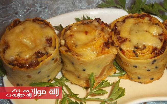 نسرحو كريبة ونوضعو فيها قليل من الحشوة +جبن محكوك