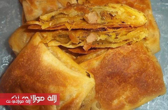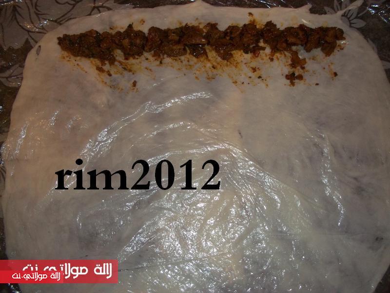 نطلقو الرغيفة بالزبدة والزيت تكون رقيقة جدا مع ونعمرو بالحشوة