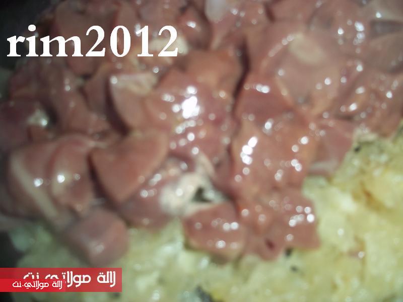 ثم نضيفو كبدة الدجاج مقطعة رقيقة ونشحرو