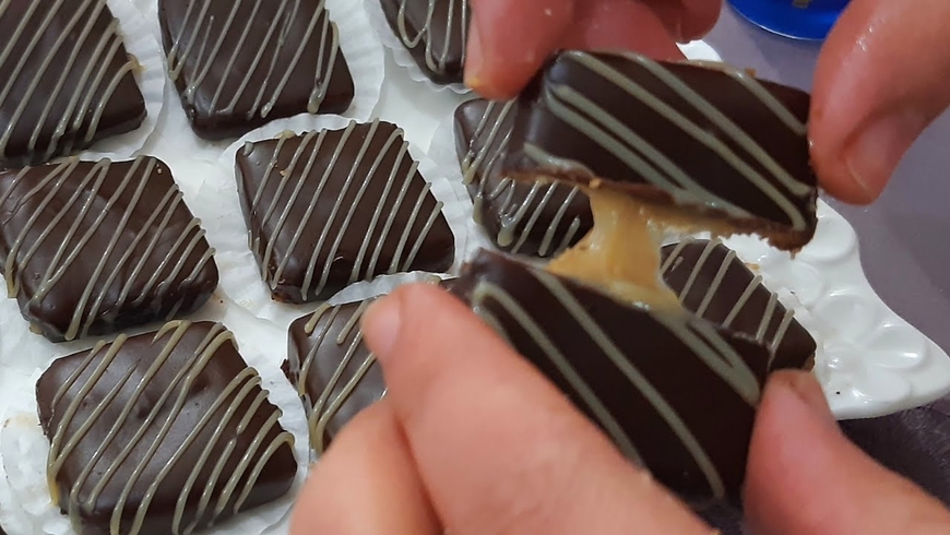 المكونات: بيضة+ 125غ زبدة+ 3 م ك بيسكوى مطحون+ ربع م ص ملح+ م ص خميرة كيماوية+ 3 م ك سكر رطب+ 4كؤوس إلا ربع دقيق ابيض+ 375غ كيس فلان بنكهة الكراميل++2.5غ نصف كأس زيت 80مل+ م ك نشا اختيارى.