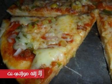 قومي بتسخين الفرن على 230- 250 درجة وضعي البيتزا تطهى في الأسفل وستاخذ حوالي 10 إلى 15 دقيقة حسب الفرن