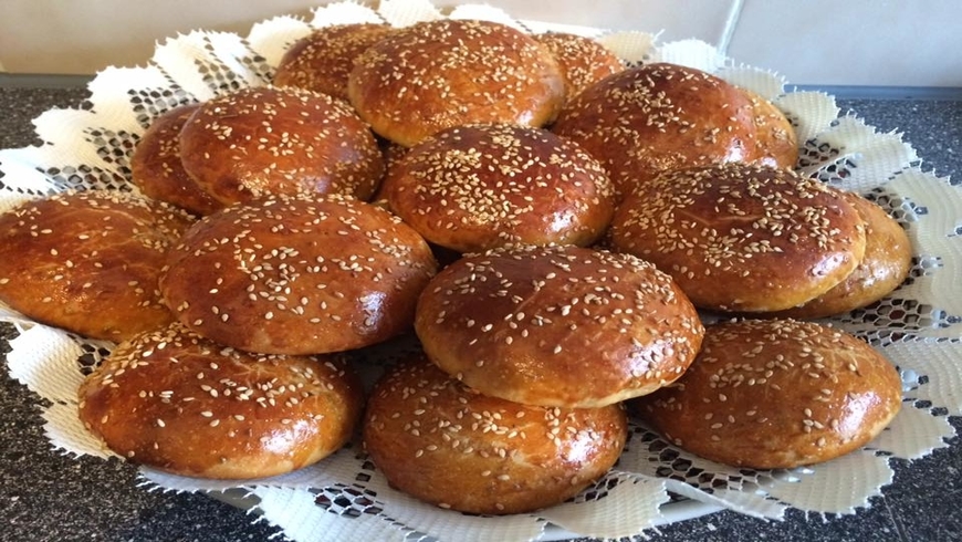 للمرحلة الثانية 6 كؤووس دقيق مايعادل 6 كؤوس+ 2 بيضات+ كأس زيت مايعادل 150 مل+ 4 ملاعق ك +نافع(ينسون) مطحون+ ملعقة ص ملح+ خميرة حلويات وزن 8 غ +بيض+ وقهوة سريعة الذوبان+ للدهن سمسم للتزيين.