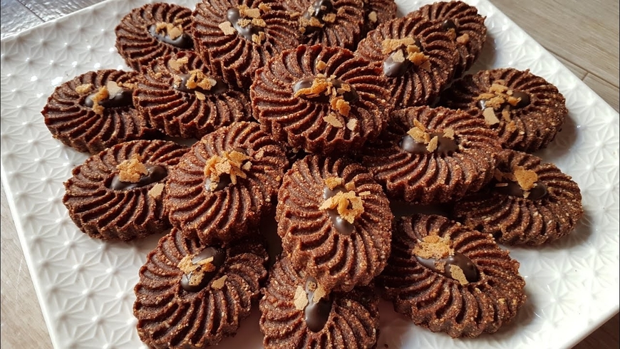المكونات 250 غ كاوكاو محمر مطحون 50 غ كاوكاو مطحون جيدا 50 غ سكر صقيل 4 م ك ماء زهر م ك مربى م متوسطة زبدة حيوانية م ك بودرة الكاكاوالمر للتزيين شوكولا سوداء فيوتين