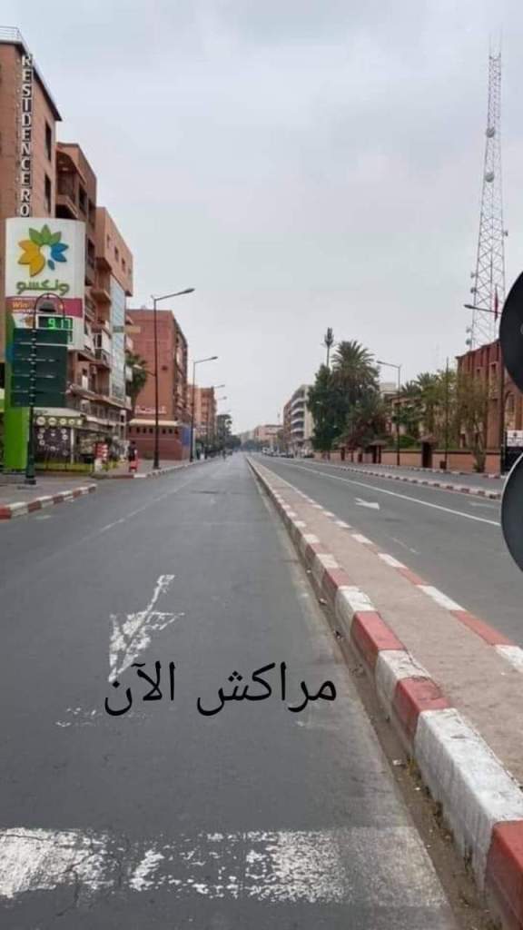 في صورة لم يعهدها المراكشيون اصبحت ترى شوارع المدينة الحمراء فارغة من الناس وهذا ما ينطبق ايضا على ساحة جامع الفنا التي تعد القلب النابض لمدينة مراكش التي لا تنام وهي صورة تجعل المنظر بشعا لا سيما عندما ترى تلك الساحة فارغة تماما من البشر وايضا الشوارع سواء الرئيسية او الفرعية فارغة اللهم قلة من الناس من تراهم على دراجاتهم النارية .