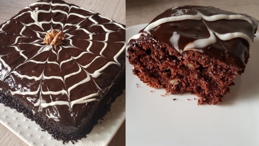 المقادير 2 بيضات 6 ملاعق سكر 6 ملاعق زيت 6 ملاعق حليب 6 ملاعق دقيق 16غ خميرة الحلويات 7 غ فانيلا 7 غ كاكاو 80 غ شوكولا سوداء 80 غ كركاع او جوز.