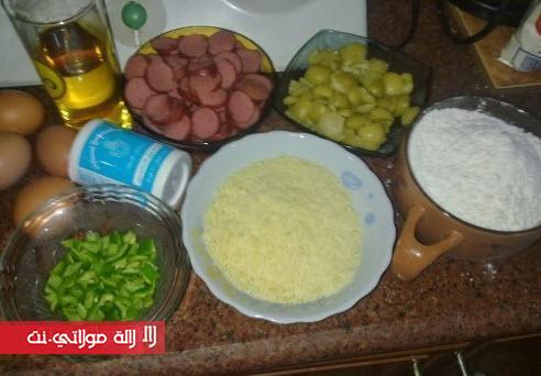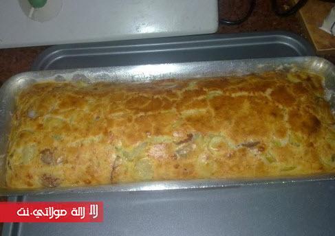 الطريقة فحال اي كيكة اللبن والبيض والدقيق والزيت والبيكينج بودر ورشة الفلفل الاسود وبعدين بتقلبي عليهم الصوصيص والجبنة والزيتون والفلفل الاخضر وتكونى دهنة الصينية ,الكيكة العادية وتحطيها في الفرن 40 دقيقة فحال الكيكة بالظبط .
