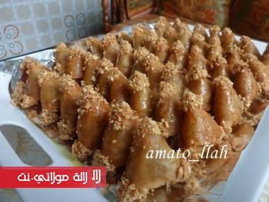 والتزيين كنغطس رؤوس البريوات فالعسل ثم فاللوز مقلي ومهرمش