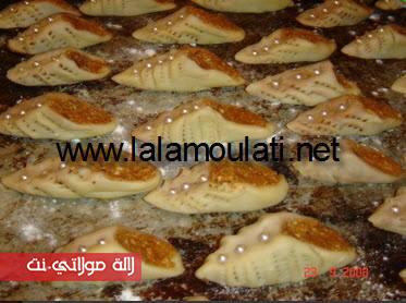 ثم بالمنقاش نشكل زواق الشربيل ونزين بالعقيق وندخلها للفرن منين تطيب ندهنها بالنباج.