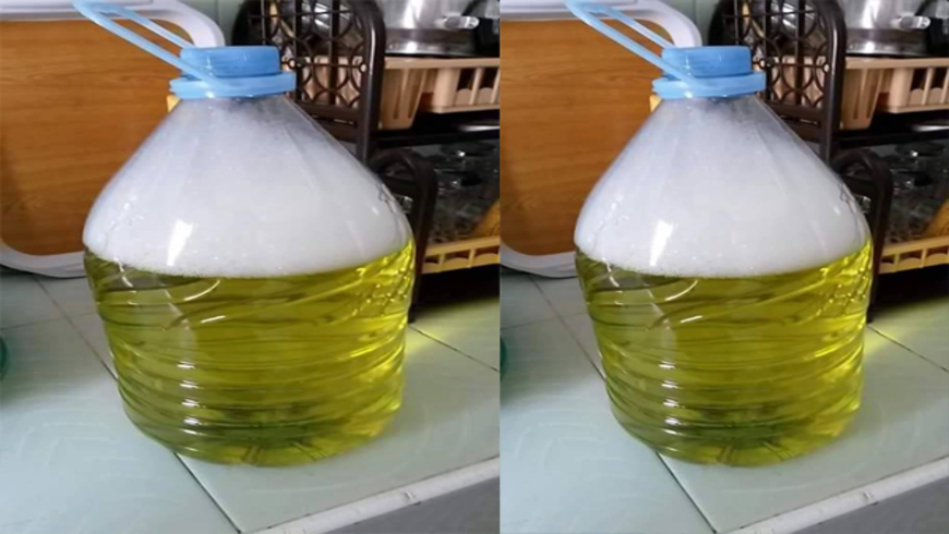 المكونات: 2 لتر ماء مغلي + 1.5 لتر ماء بارد+قشور ليمون+عصير 4 ليمونات+صابون حجرة+2 كؤوس من الصابون السائل المخصص للأواني+ملعقة بيكاربونات الصودا