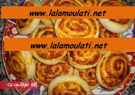 وفي لاطة الفرن نقوم بوضع القطع وندخلها الى الفرن حتى تستوي البيتزا