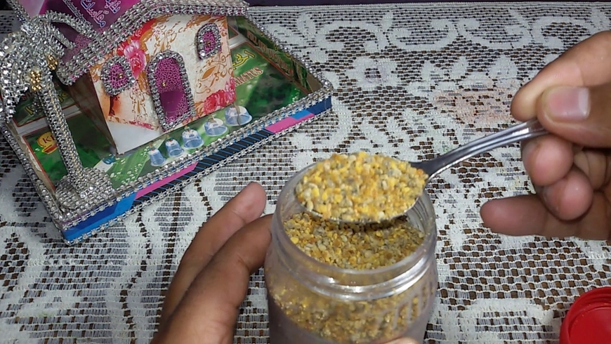 طريقة التحضير :اخلطي هذه المكونات كلها في قنينة أو إناء محكم الإغلاق جيدا وضعيها في مكان بعيدا عن الرطوبة وتناولي ملعقة من هذا الخليط كل يوم على الريق وعلى معدة فارغة كرري العملية لمدة 20 يوما وسترين خلاصك فيها.