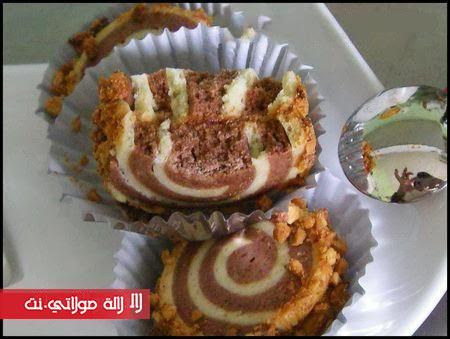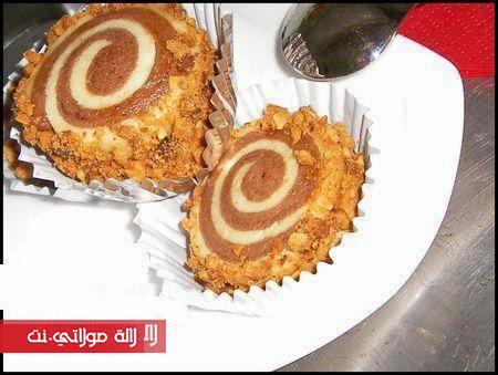ابسطي بالحلال(بالدلاط) عجينة بيضاء و ابسطي كذلك البني و ضعيهم فوق بعض مثل الصورة
