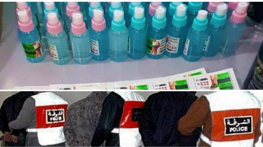 وذكر بلاغ للمديرية العامة للأمن الوطني ، أن مصالح الأمن كانت قد رصدت موادا للتطهير والتعقيم تحمل علامات تجارية مزيفة، تعرض للبيع في مواقع التواصل الاجتماعي، وهو ما استدعى فتح بحث في الموضوع أسفر عن توقيف سائق سيارة يتولى التوزيع في عدة نقط للبيع بمدينة الدار البيضاء، قبل أن يتم رصد ورشة سرية تستغل لإعداد وتحضير مواد التطهير والتعقيم انطلاقا من مواد كيميائية يجري حاليا القيام بالخبرات العلمية الضرورية من أجل تحديد طبيعتها ودرجة خطورتها.