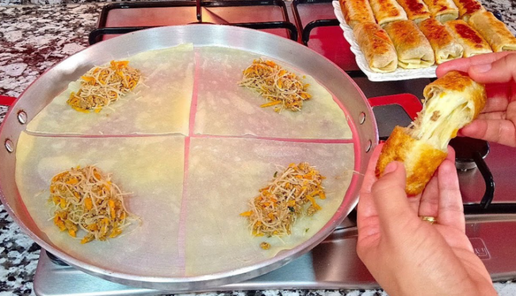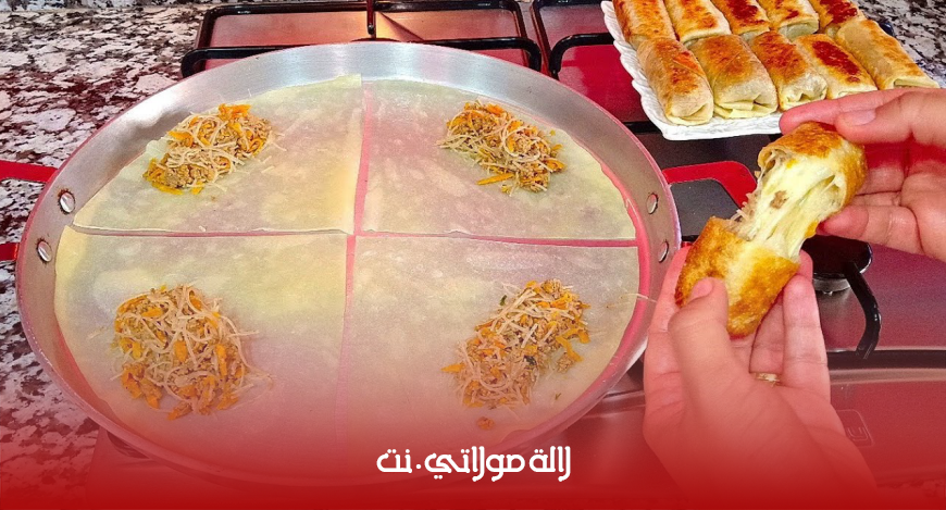 مكونات العجين: 500 غ دقيق 1 ملعقة كبيرة زيت القليل من الملح ماء دافئ لجمع العجينة للحشو: لحم مفروم ، شعرية ، جزر مبشور، بصل، توابل
