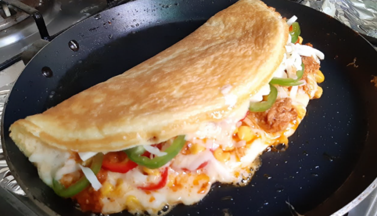 مقادير أمليط: – 3 بيضات – قليل من الملح – قليل من الخميرة الكيماوية – ملعقة كبيرة من الدقيق – ملعقتان من الحليب – قيلل من الزبدة – فلفل أحمر وأخضر – قليل من التونة المعلبة – ملعقة من الذرة المعلبة – شريحتان من الجبن