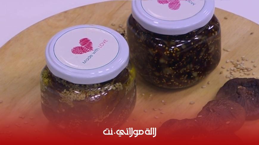 المكونات : 4 حبات من التين المجفف + كوب من زيت الزيتون + ملعقتين من السمسم + ملعقة من بذور الصوجا المطحونة