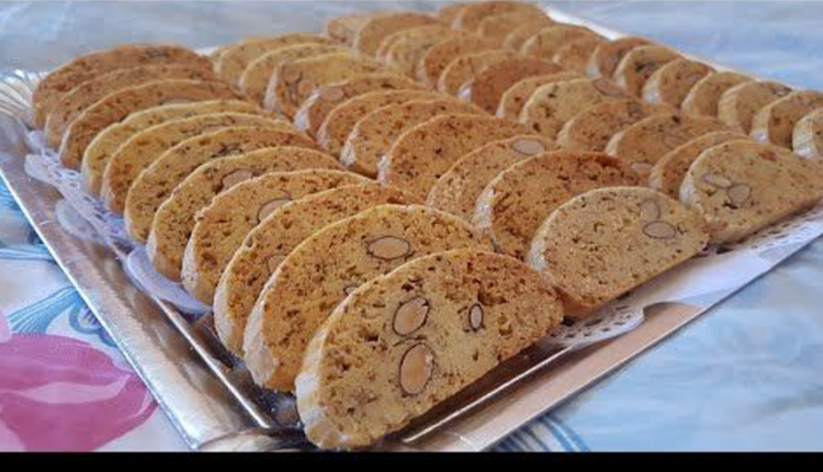 4 بيضات+ كأس سكر+ كأس زيت+ 8 غ خميرة الحلوى+ 15 غ سكر فانيلا+ 2 ملاعق كبيرة حليب+ 6 ملاعق سمسم + خليط ملعقة كبيرة من حبة حلاوة نافع وبسباس+ نصف كأس لوز مغلي+ الملح+ 700 غ دقيق ابيض
