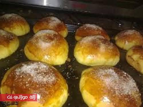 ثم نحضر كويرات ونحطها في طاوة مدهونة بزيت ونخليها تخمر ويضاعف حجم كويرات وندهنهم بصفار البيض ورش بسنيدة من فوق وندخلها الفران وتقدم بالف صحة وعافية