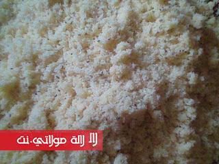 و نخلط جيدا حتى تتلبس كل حبيبات السميدة بالزيت