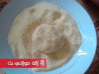 ثم نشكلها منها كويرات صغار و نمررهم في السميدة الغليضة