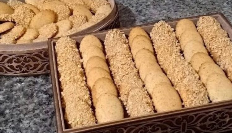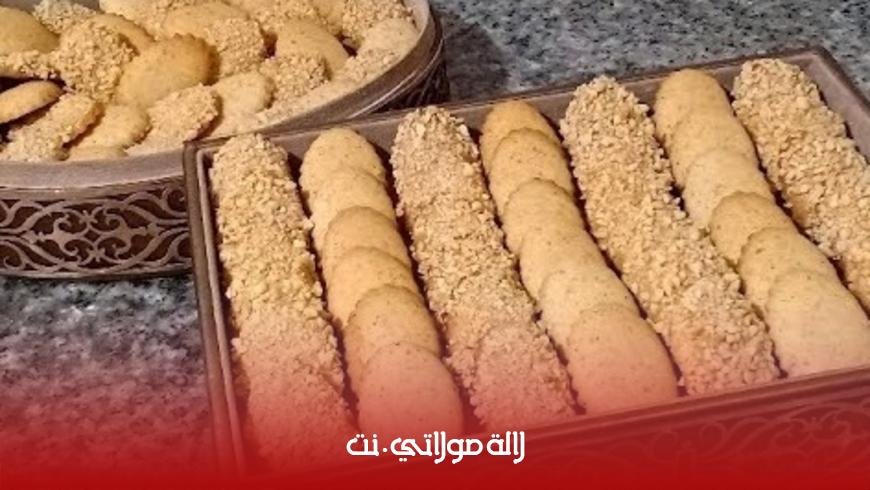 المكونات كاس نشا + كاس سكر صقيل + قبصة ملح + 2 كؤوس كاكاو محمر و مطحون + 250 غ زبدة + فاني + بيضة + 8 غ خميرة الحلويات + دقيق للتزيين : مربى المشمش + كاوكاو مهرمش