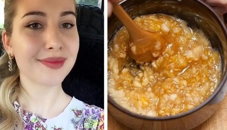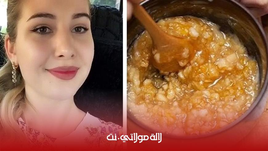 المكونات :ملعقة من العسل الحر+ملعقة من النشا+تفاحة واحدة مبشورة