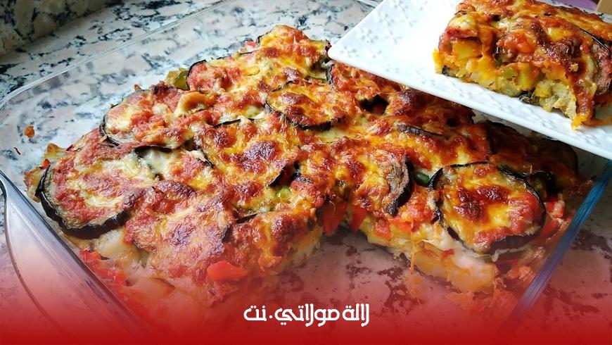 يمكنك سيدتي أن تمتعي عائلتك بهذه الوجبة الصيفية والسهلة التي تتكون من مكونات لذيذة وصحية والتي ستنال إعجاب عائلتك وستحب مذاقها لا سيما أنها تحتوي على الكثير من الفوائد دون الحاجة للحوم فقط البطاطس والباذنجان وبعض المكونات البسيطة.
