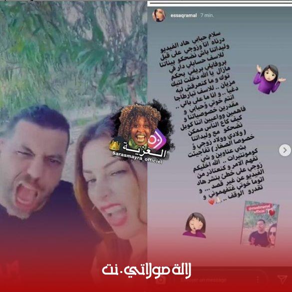 وتابعت: “أنتم خوتي وحبابي ومقدرين خصوصياتنا وفاهمين وواعيين آننا کوبل كيف كاع الناس ممكن نضحكو مع وليداتنا اولادي وولاد زوجي وخصوصا الصغار، تفاجأت بشي عناوين وشي کومونتيرات، الله أخلیكم تفهمو الأمر وكنعتادر من زوجي على خطأ بنشر هاد الفيديو عن غير قصد، و اتمنى خوتي غتفهموني وتقدرو الموقف”.واعتبر بعض رواد مواقع التواصل الاجتماعي أن “الفيديو عادي ولا يستدعي من أمل أن توجه اعتذارها لأحد”.