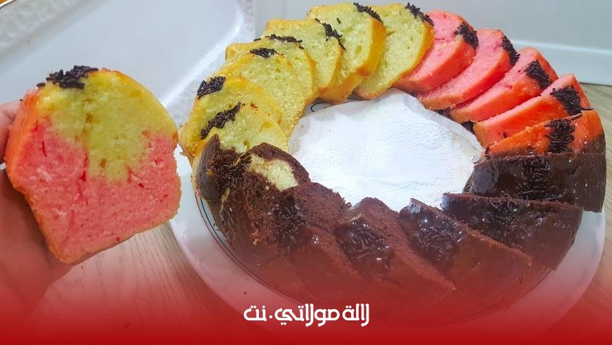المقاديـر: 3 حبات من البيض 185 مل من الزيت 250 مل من الحليب 185 غ من السكر 16 غ من خميرة الحلويات او البيكينج باودر 7 غ من السكر فانيلا القليل من الملح فلان او بودينج بنكهة الفراولة فلان او بودينج بنكهة الشوكولا 350 غ من الدقيق.