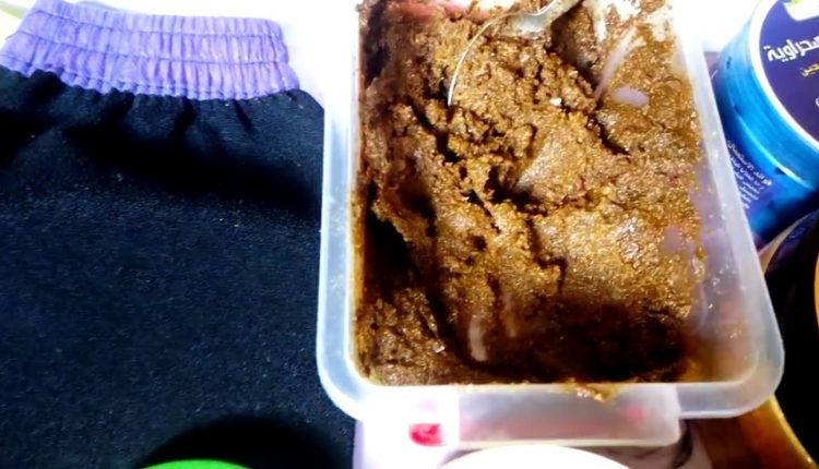 الطريقة:نقوم بعجن التمر مع الملح جيدا ثم نضيف إليه باقي المكونات ونمزج الكل بعد ذلك نضع هذا الخليط على الجسم ونتركه لمدة ساعة كاملة بعد ذلك نشطفه بالماء الفاتر ، نداوم هذه الطريقة للحصول على نتيجة مرضية.